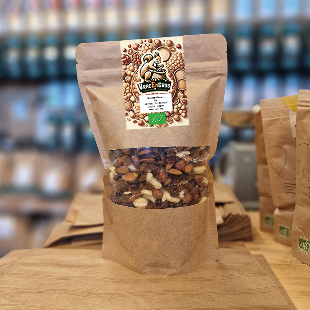 Mélange tonus bio riche en fibres, oméga, amandes, noisettes, raisins secs. Idéal en collation saine, dessert ou snack énergétique et gourmand.