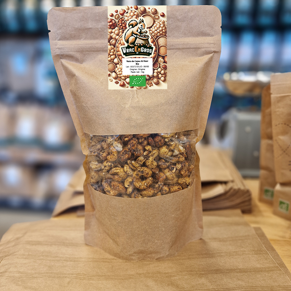 Noix de cajou bio à l’ail noir, douce alliance entre croquant et umami. Un snack sain, riche en goût et en antioxydants naturels.